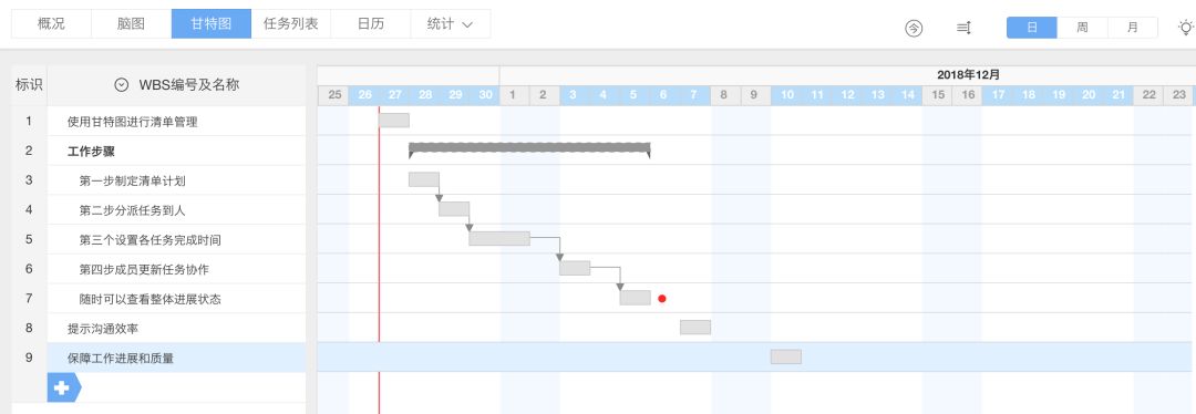 2.使用项目对复杂工作进行清单管理。 甘特图被广泛用于复杂工作的计划和进展跟踪, 同时也是保障工作质量的工具。